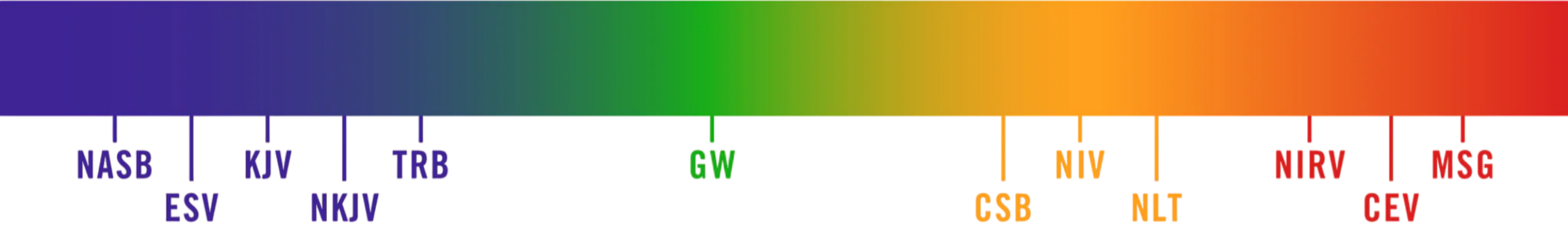 The Bible's 900 English translations can be organized along this continuum. The translations range in their approach from word-for-word to the more interpretive.